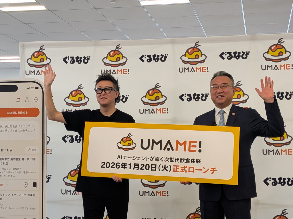 飲食店紹介・予約サービスのぐるなびは1月20日、生成AI(人工知能)を活用した次世代の飲食店提案アプリ「UMAME!(ウマミ)」の提供を正式に開始した。ユーザーの過去の行動や好みを学習した「AIエージェント」が、検索行為を介さずに最適な店舗を提示する「No Search(検索しない)」体験を掲げる。1996年の創業から30年目を迎える同社は、杉原章郎社長の指揮下で全社的なAIシフト「ぐるなびNextプロジェクト」を推進しており、本アプリをその象徴的なサービスと位置づける。既存の検索型グルメサイトが抱える課題を技術で突破し、「探す外食から、出会う外食」へのパラダイムシフトを目指す。