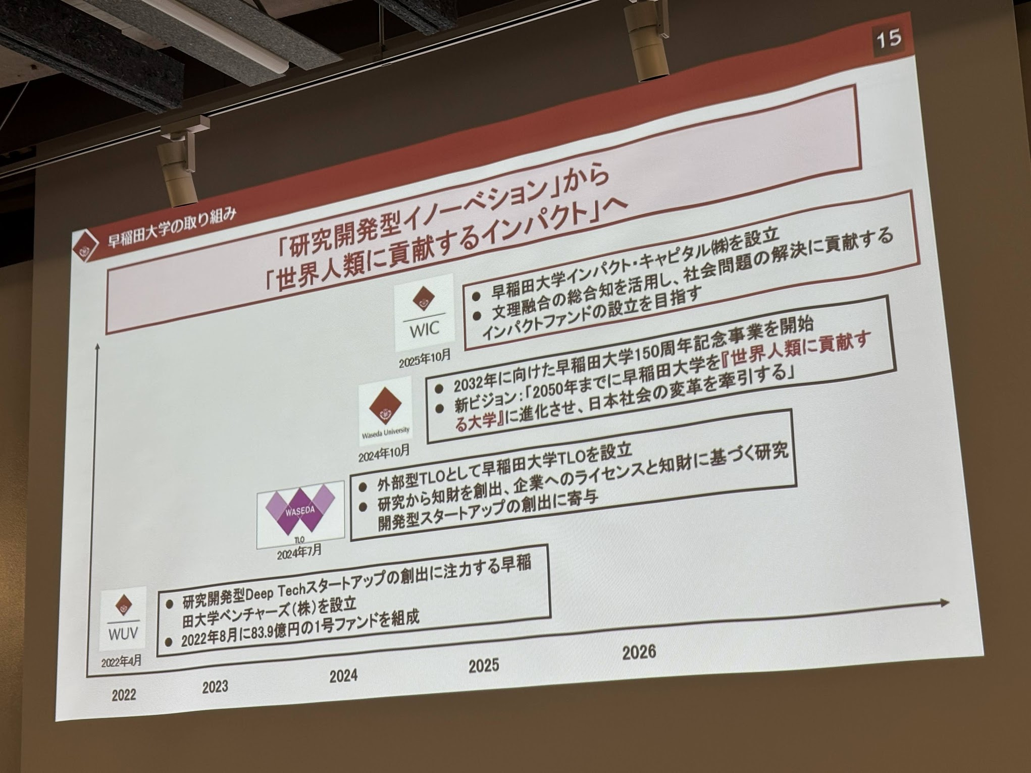 早大は2022年に「早稲田大学ベンチャーズ(WUV)」を立ち上げ、理工系の研究成果を起点とするディープテック領域への投資を先行して進めてきた。今回設立したWICは、それに次ぐ同大のエコシステム(生態系)の新たな柱となる。