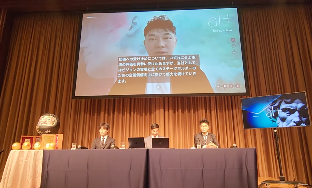 オルツはAI議事録サービス「AI GIJIROKU」を手がけるソフトウエア開発企業であり、人間のデジタルクローン開発を目指すという目標も掲げて、大手企業との提携やベンチャーキャピタルからの出資を得て急速に成長を遂げていた。上場会見は一般に、東証の記者クラブで行うが、同社はホテルの宴会場で実施した。それだけなら、時折あることだが、会見では米倉千貴社長は喋らず、デジタルクローンに話させた。当時から、違和感を感じていた記者もいたという。