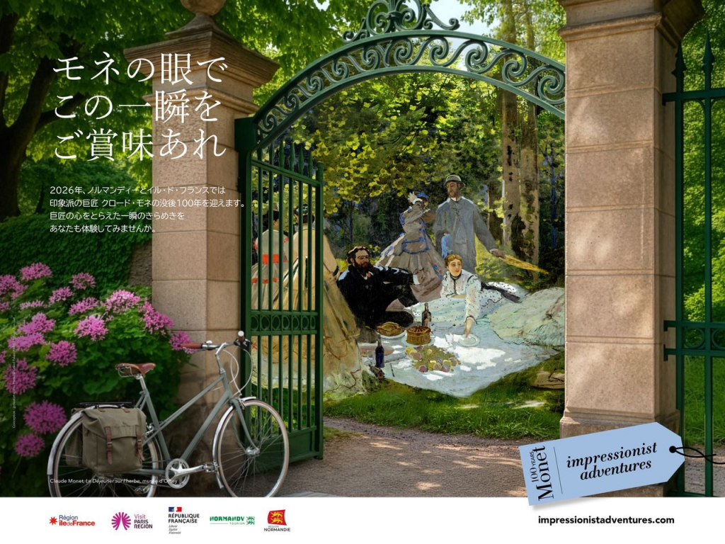 印象派の巨匠クロード・モネ(1840~1926)の没後100年となる2026年、フランスのノルマンディー地方とパリ地方で大規模なプロジェクト「印象派を巡る旅2026」が展開される。フランス観光開発機構、ノルマンディー地方観光局などが12月17日、都内で開いた記者発表会で詳細を説明した。同プロジェクトでは、モネの足跡をたどる旅の提案や、現代アーティストによる新作展示など、100を超えるイベントが予定されている。