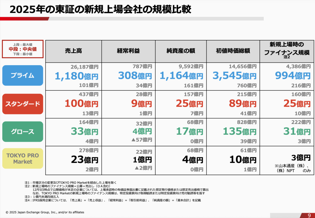 2025年のグロース市場は、上半期を中心に株式市場の先行き不透明感が漂ったことから、多くの上場準備企業が様子見姿勢を強めた。スタートアップが上場した「後」の成長をより強く求める制度改革の年でもあった。東証は12月8日に、グロース市場の上場維持基準の規則改正を施行した。これは「高い成長を目指した経営」を強力に促すもので、上場企業に対して成長戦略のアップデートや開示の充実を要請している。上場5年後までに時価総額100億円を達成を求められたことで、スタートアップ経営者や証券会社やベンチャーキャピタルなどの関係者が上場に対して及び腰になったことも影を落とした。