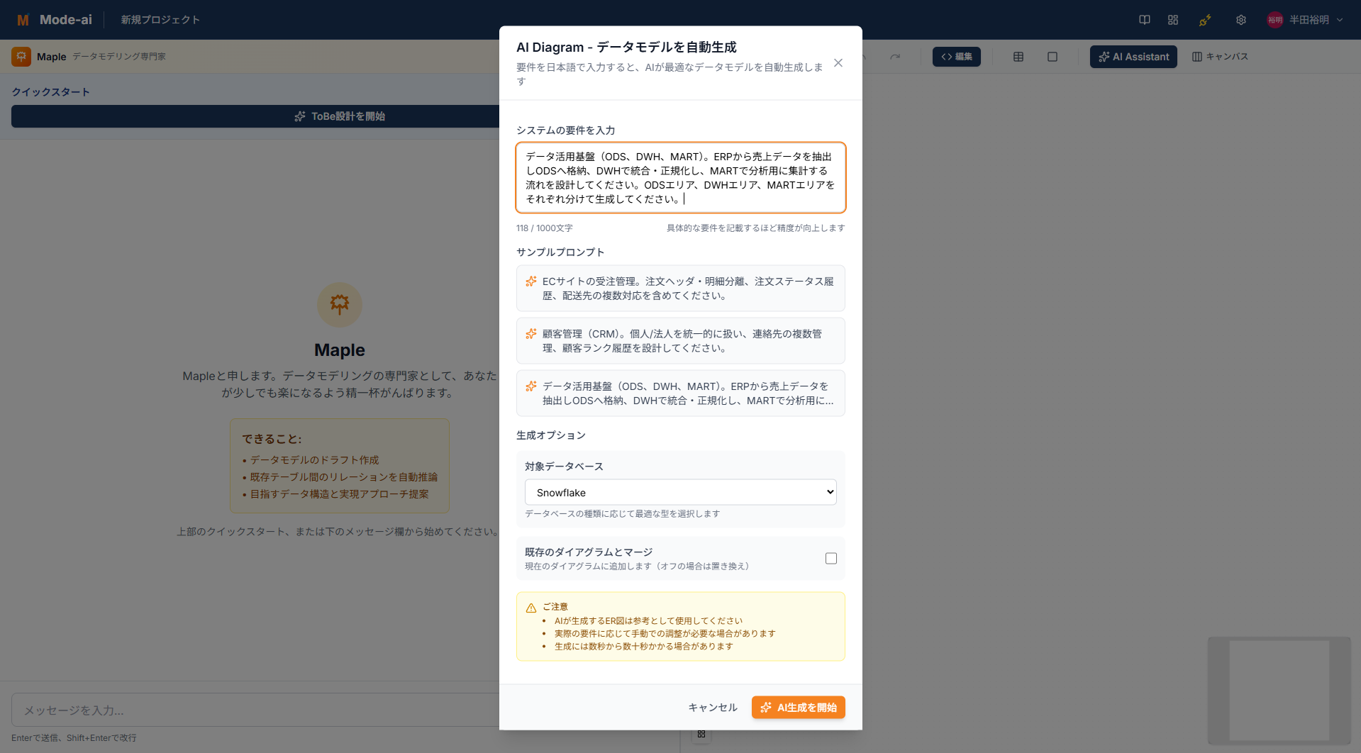 - AI駆動のデータモデル生成