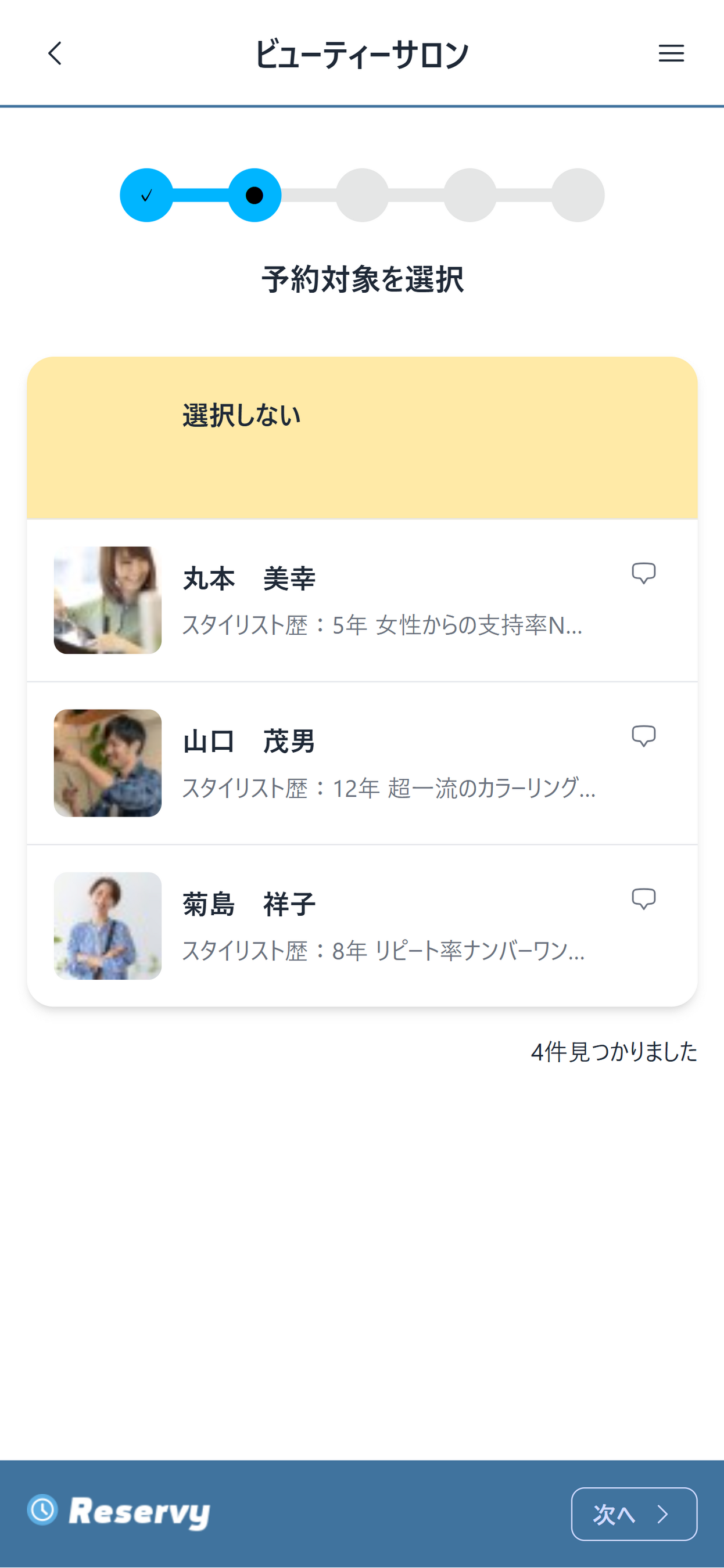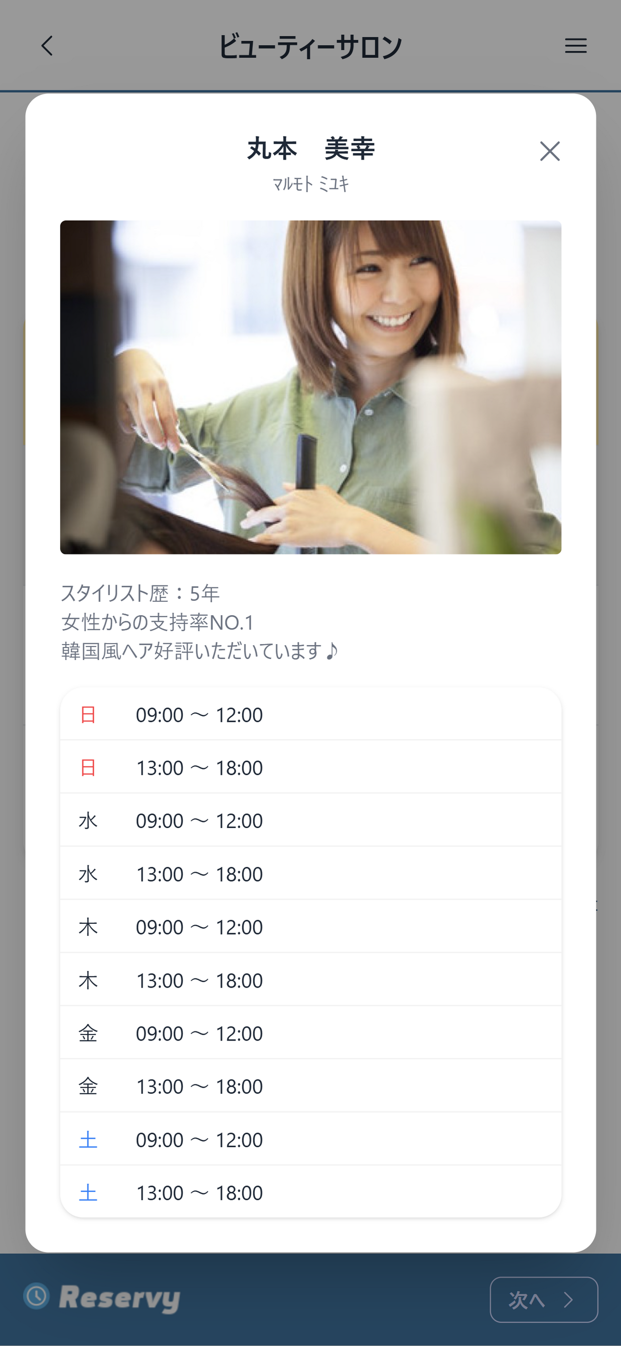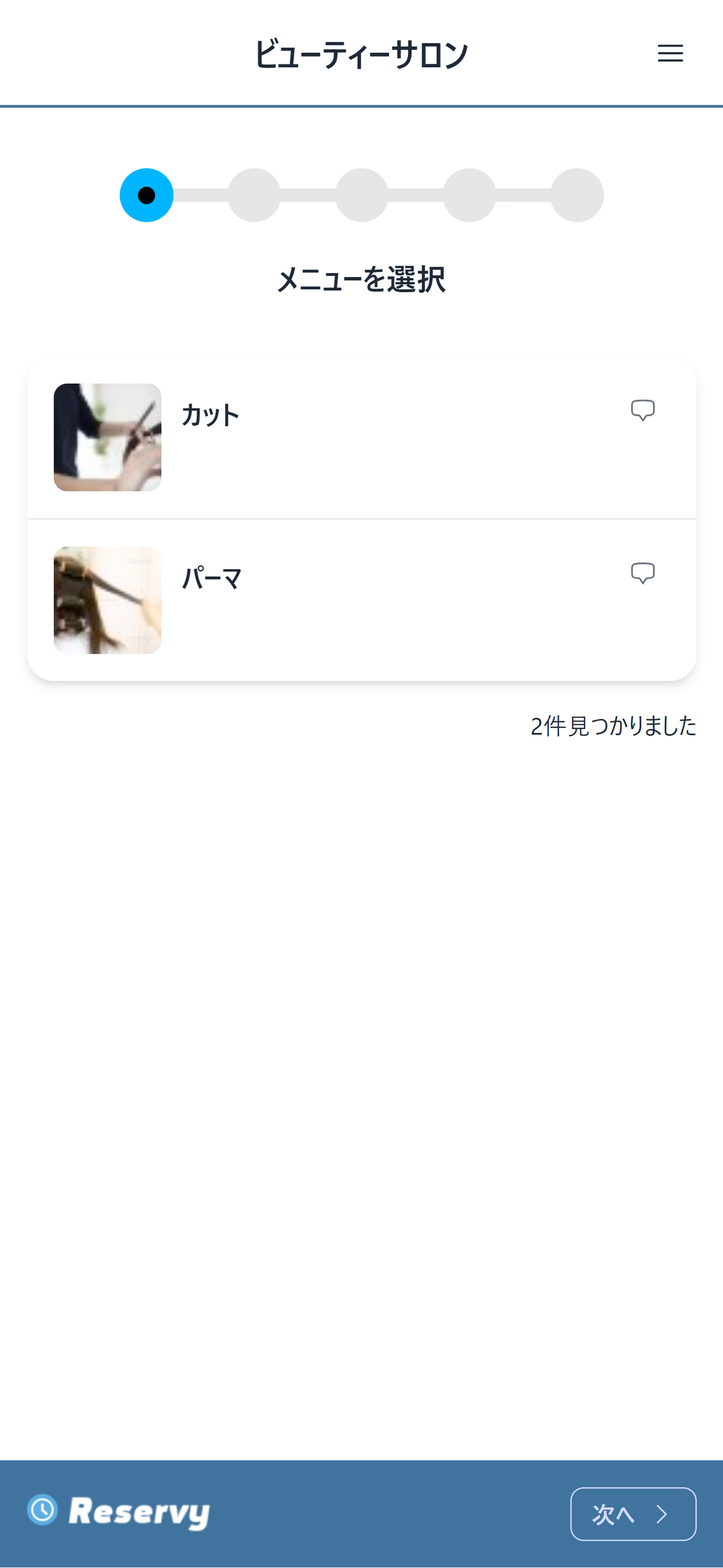 [画像2: https://prcdn.freetls.fastly.net/release_image/8563/5/8563-5-8e017a9a81a4903edb79b17d16387f21-1246x2700.png?width=536&quality=85%2C75&format=jpeg&auto=webp&fit=bounds&bg-color=fff ]メニューを選択[画像3: https://prcdn.freetls.fastly.net/release_image/8563/5/8563-5-b69cf0d0a4dd3f3c5b9ae052d1da3f34-1246x2700.png?width=536&quality=85%2C75&format=jpeg&auto=webp&fit=bounds&bg-color=fff ]予約対象を選択[画像4: https://prcdn.freetls.fastly.net/release_image/8563/5/8563-5-d8660b6233eca267321556a47a53d9b5-1246x2700.png?width=536&quality=85%2C75&format=jpeg&auto=webp&fit=bounds&bg-color=fff ]予約対象を参照