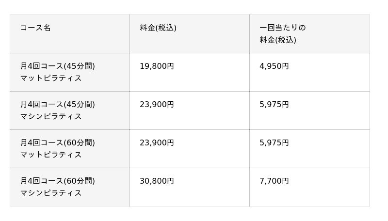 ピラティスが健康のための習慣の一つになってほしいと願いで継続しやすい価格設定でご案内しています。
