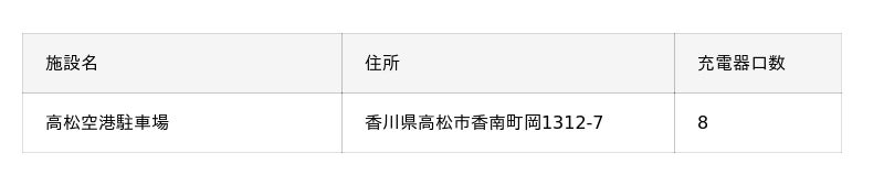 ミライズエネチェンジ株式会社(本社:東京都中央区、代表取締役社長:柘野 善隆、以下「ミライズエネチェンジ」)と、高松空港を運営する高松空港株式会社(本社:香川県高松市、代表取締役社長:小幡 義樹、以下「高松空港(株)」)は、12月1日から高松空港旅客ターミナルビル前の空港駐車場において、6kW普通充電器「EV充電エネチェンジ」を8口設置し、ご出張やご旅行時などに空港で満充電ができるEV充電環境を提供することとなりました。