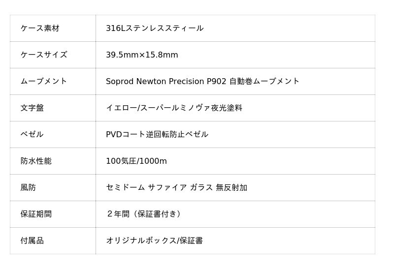 [画像11: https://prcdn.freetls.fastly.net/release_image/106099/25/106099-25-7701e46b5a77b211543d76f1a465870d-1922x2700.jpg?width=536&quality=85%2C75&format=jpeg&auto=webp&fit=bounds&bg-color=fff ]追加オプションでCOSC認証取得済み Soprod Newton Precision P902 ムーブメントをお選びいただくことも可能です。