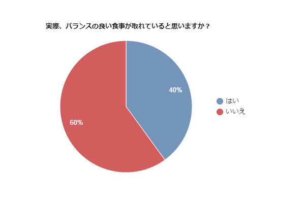 次に、「実際、バランスの良い食事が取れていると思いますか?」という質問もしてみました。すると、なんと「はい」と答えた人は40%と半数にも満たなかったのです。