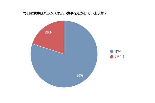 綺和美では、「毎日の食事はバランスの良い食事を心がけていますか?」というアンケートを行ないました。すると、80%もの人が「はい」と答えたのです。