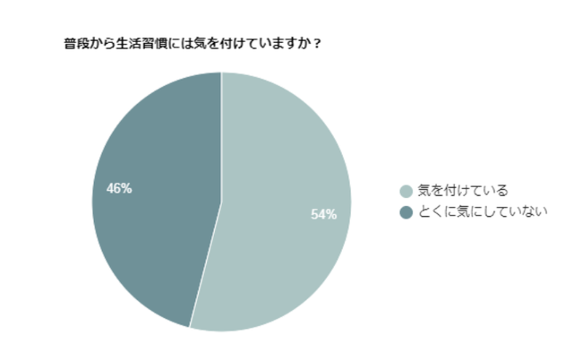 綺和美では、「普段から生活習慣には気を付けていますか?」というアンケートを行いました。すると約半数の54%の人が「気を付けている」と答えたのです。