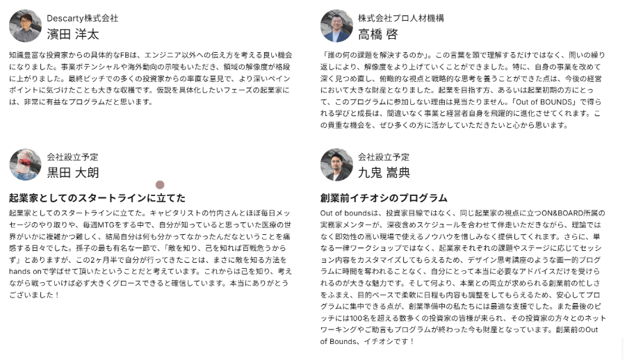 また、過去の参加者からも、続々と資金調達に成功する起業家が誕生しており、「結果が出る創業支援プログラム」としてご好評いただいております。