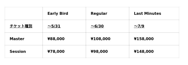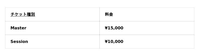 ※Masterチケット購入者のみ、7月7日(火)にSPACETIDEが主催するレセプションに参加できます。