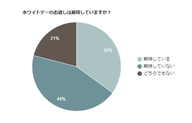 そこで、先ほどのアンケートとともに、「ホワイトデーのお返しは期待していますか?」というアンケートを行ってみました。その結果は、下記の図のようになりました。