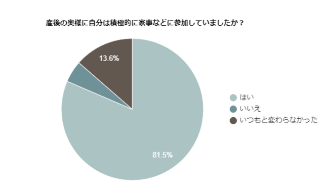 1.産後の妻のため、積極的に家事に参加していたと思っている夫は8割以上!