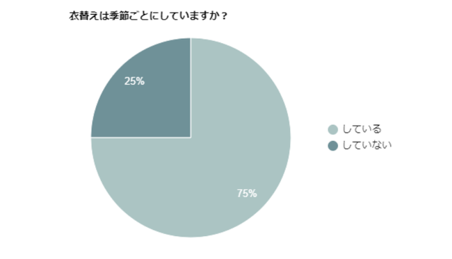 綺和美では、「衣替えは季節ごとにしていますか?」というアンケートを行いました。すると、75%の人が「している」と答えたのです。