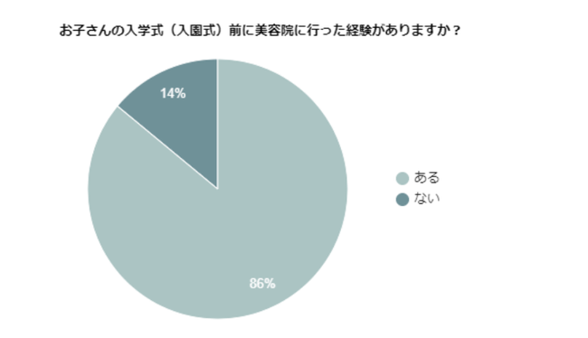 綺和美では、「お子さんの入学式(入園式)前に美容院に行ったことがありますか?」というアンケートを行いました。すると、86%もの人が「ある」と答えたのです。