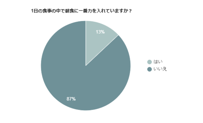 それでは、「1日の食事の中で朝食に一番力を入れている人の割合」はどれくらいなのでしょうか。こちらもアンケートを行ったので、下記の結果をご覧ください。