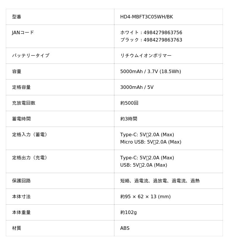薄型軽量で持ち運びに最適なモバイルバッテリー。容量は5000mAhで、一般的なスマートフォンを約1回フル充電することが可能です。