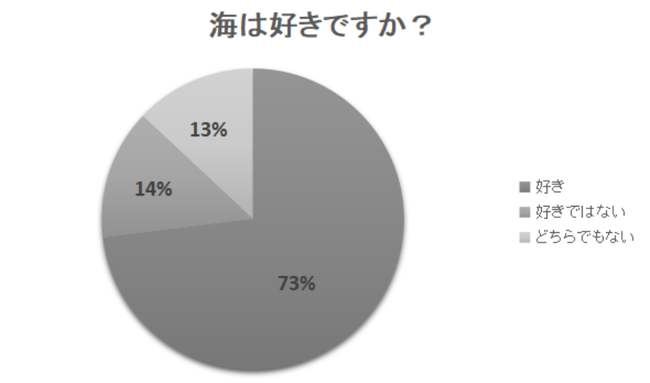綺和美では、男女100人に「海は好きですか?」というアンケートを行いました。すると、73%の人が「好き」と答えたのです。