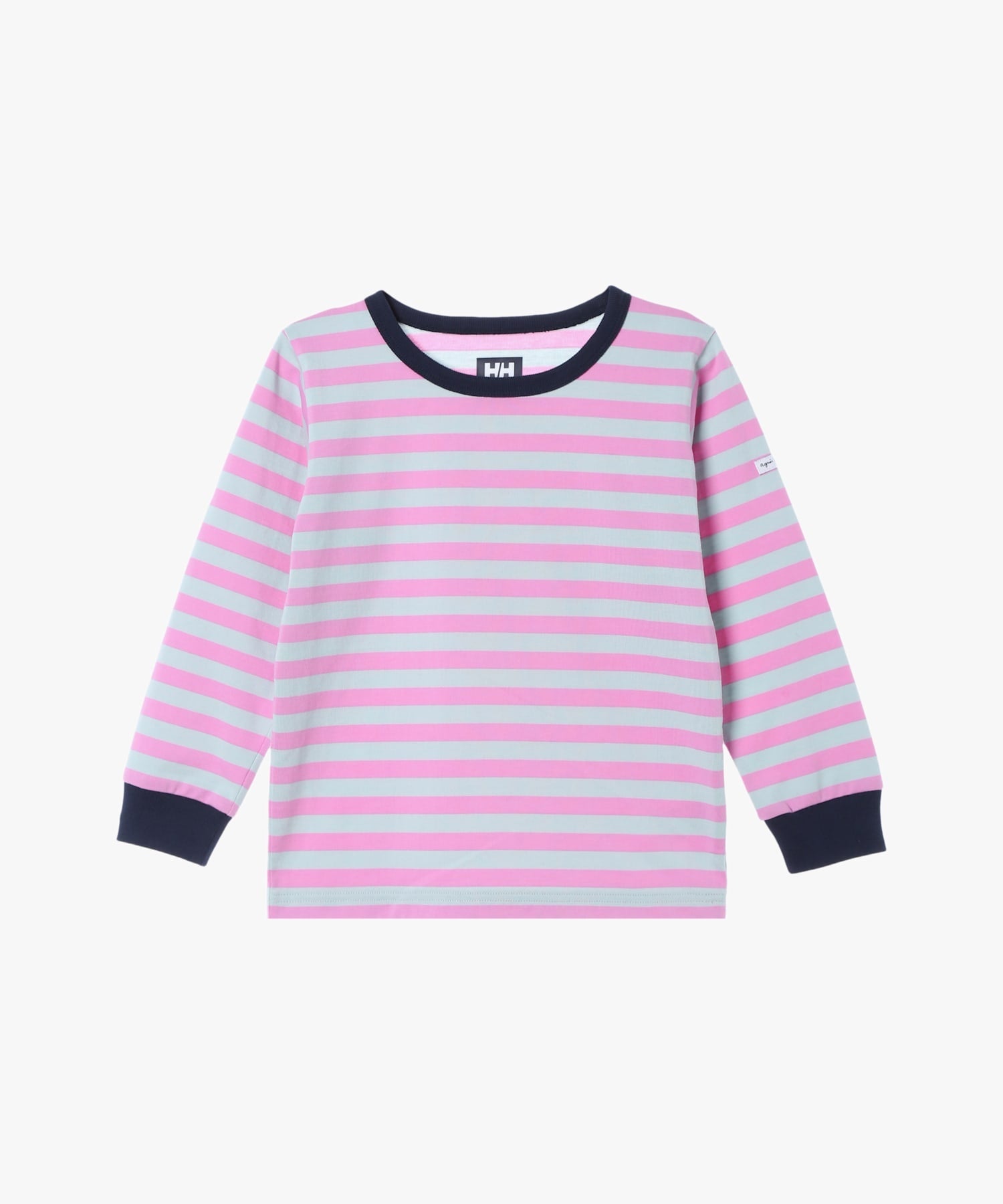 [画像3: https://prcdn.freetls.fastly.net/release_image/7744/121/7744-121-1cb2f70d05f71e74211f5d6a4f827a8a-1500x1800.jpg?width=536&quality=85%2C75&format=jpeg&auto=webp&fit=bounds&bg-color=fff ]アニエスベーの定番12mmピッチボーダーに、ヘリーハンセンのプレーティング天竺素材を組み合わせたロングスリーブボーダーTシャツです。コラボレーションならではの明るいカラーバリエーションで展開。生地には東南アジアを中心に漂着したペットボトルを回収し、繊維へと戻したリサイクルポリエステルとコットンが使われています。表側のナチュラルな風合いに対して、裏側は肌離れがよくドライなタッチ感が特徴です。