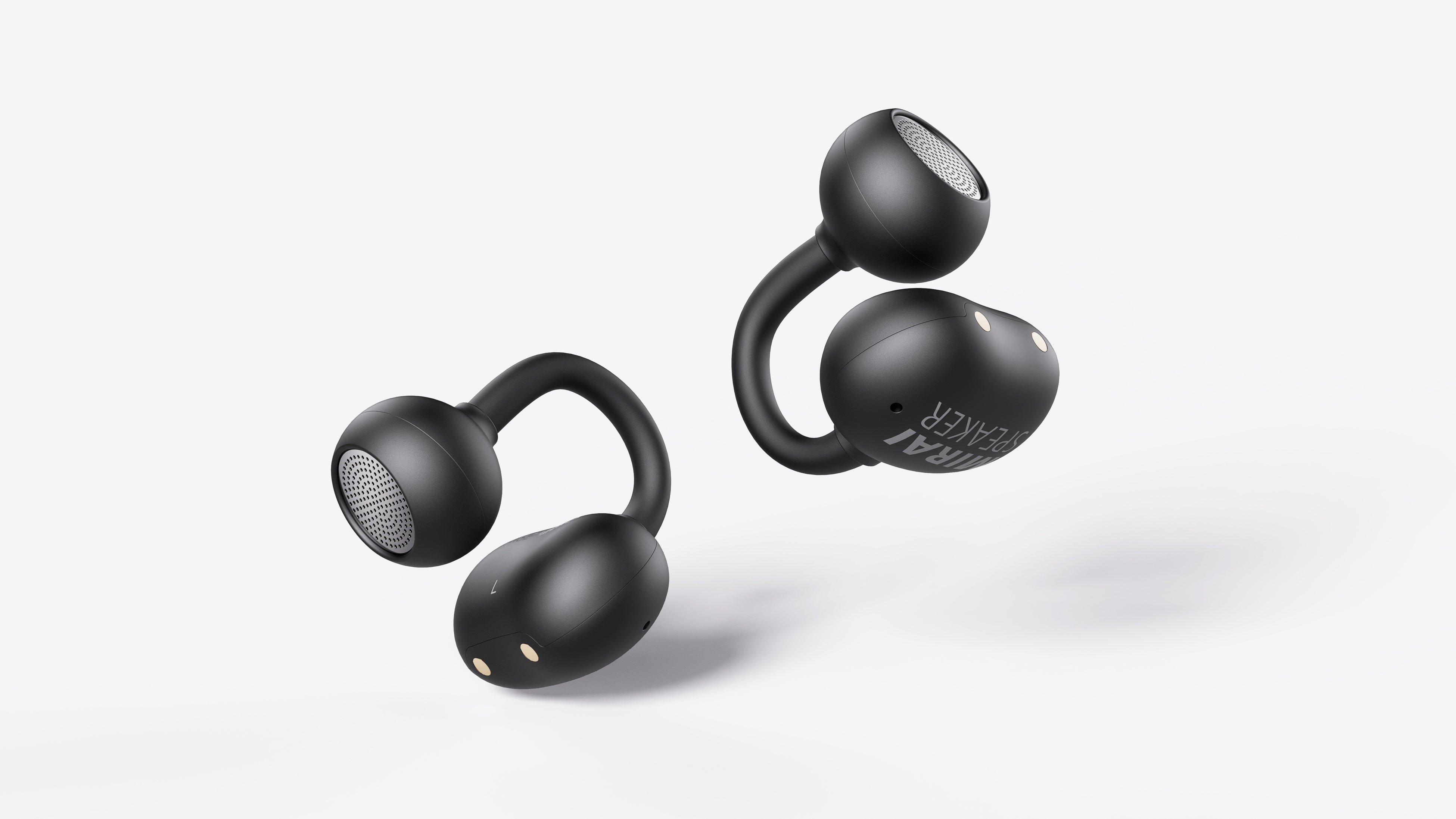 イヤカフ型のオープンイヤー設計により、耳をふさがず開放的な着け心地を実現。眼鏡とも干渉せず、長時間装着でも疲れにくい設計です。