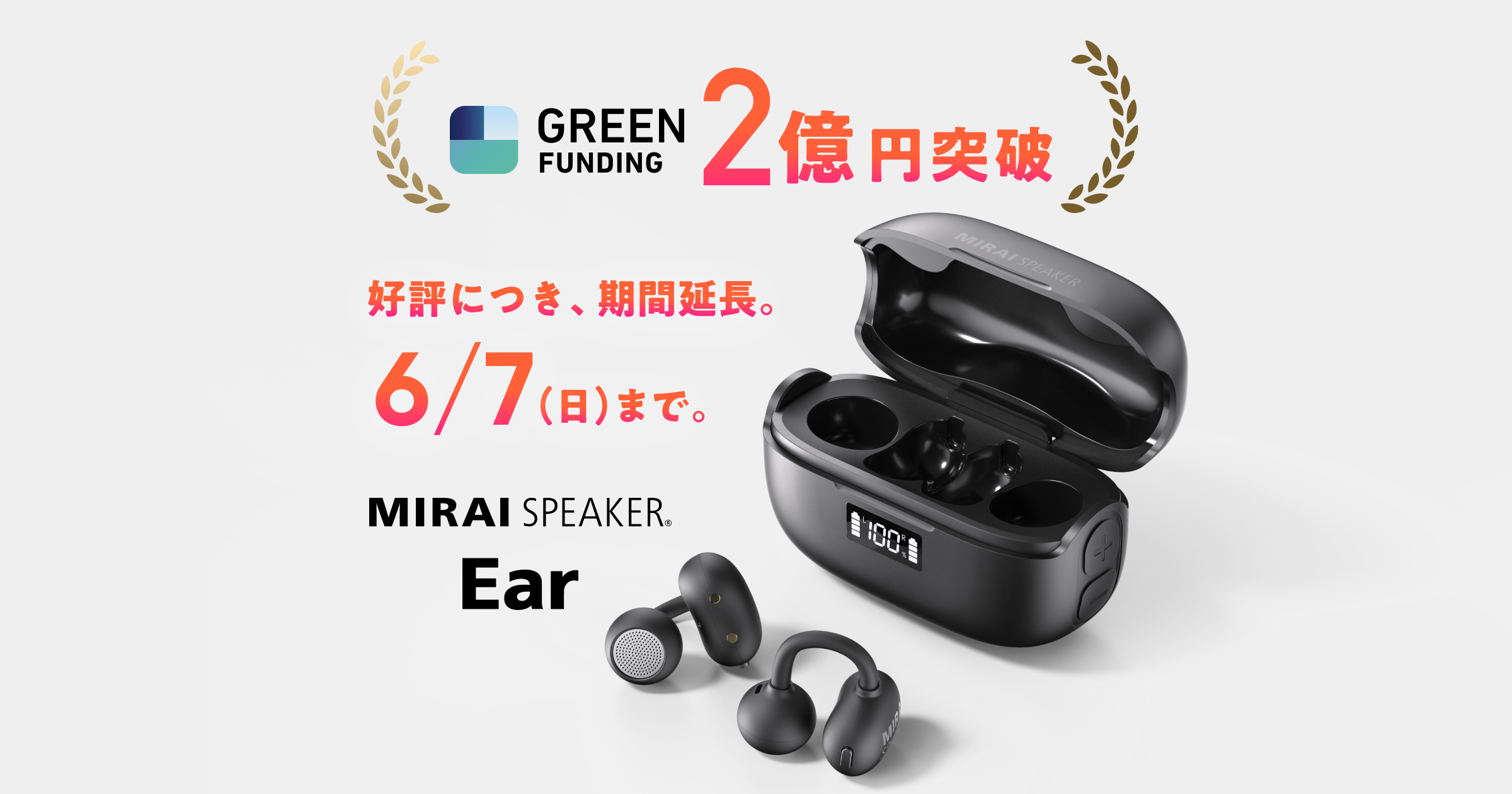 【支援総額2億円突破】世界初!聞こえ調整機能搭載 イヤカフ型集音器※1「ミライスピーカー・イヤー」クラウドファンディング、6月7日(日)まで期間延長