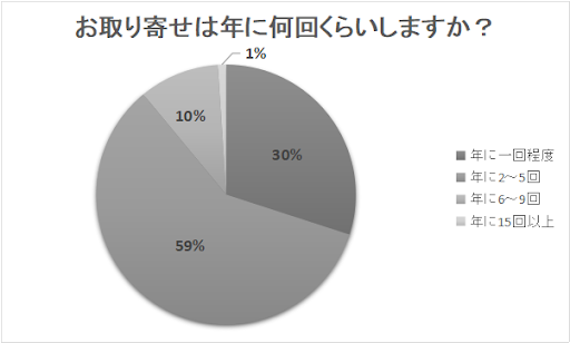 次に、「お取り寄せを年に何回くらいしますか?」というアンケートも行ってみました。すると、一番多かった回答は、「年に2~5回」で59%でした。