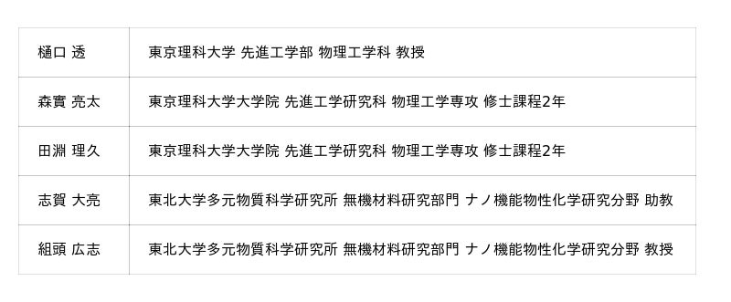 ※PR TIMESのシステムでは上付き・下付き文字や特殊文字等を使用できないため、正式な表記と異なる場合がございますのでご留意ください。正式な表記は、東京理科大学WEBページ(https://www.tus.ac.jp/today/archive/20260109_7307.html)をご参照ください。