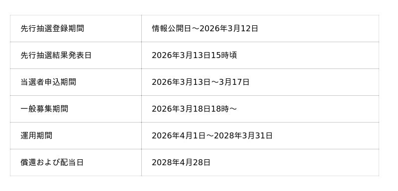 また、本ファンドは2026年3月18日(水)18時より先着順にて募集を開始いたします。