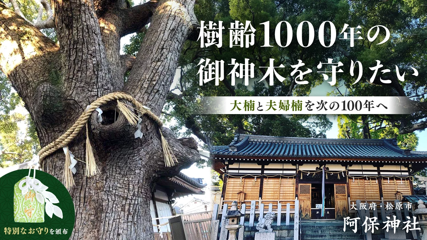 本企画の第1弾として、大阪で1,200年の歴史を持つ「阿保神社(あおじんじゃ)」にて、樹齢1,000年を超える御神木の保全プロジェクトがスタートします。近年、社会問題にもなっている老朽化した樹木の倒木リスクを踏まえ、樹木医による診断を行ったところ、「適切な剪定をせずに自重に耐えきれなくなった場合、本殿や境内に落下する可能性がある」との見解が示されました。その楠の大きさや道幅の狭い境内周辺という特殊な環境から、枯れ枝の除去や剪定には高度な専門技術が必要で、将来的に約500万円以上の費用が見込まれています。地域の小さな神社が次の世代まで続いていくためには、日々の運営管理だけではまかないきれない現状があり、本プロジェクトを通して保全・維持管理に向けた支援を募ります。