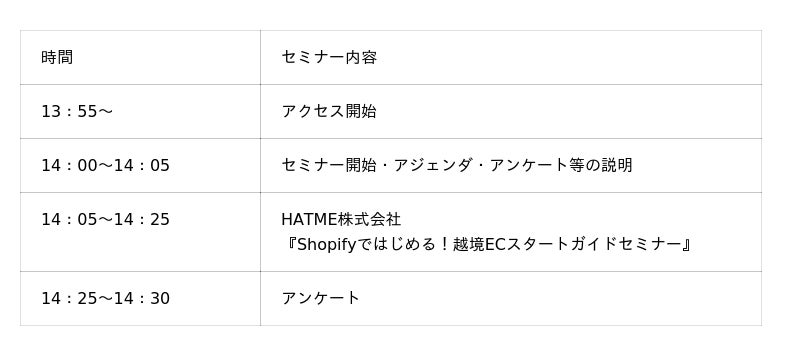 名称:Shopifyではじめる!越境ECスタートガイドセミナー
