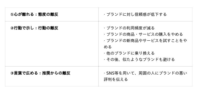 不誠実な体験をした顧客の90%は、3つの消費者離反プロセスを引き起こして離反していきます。