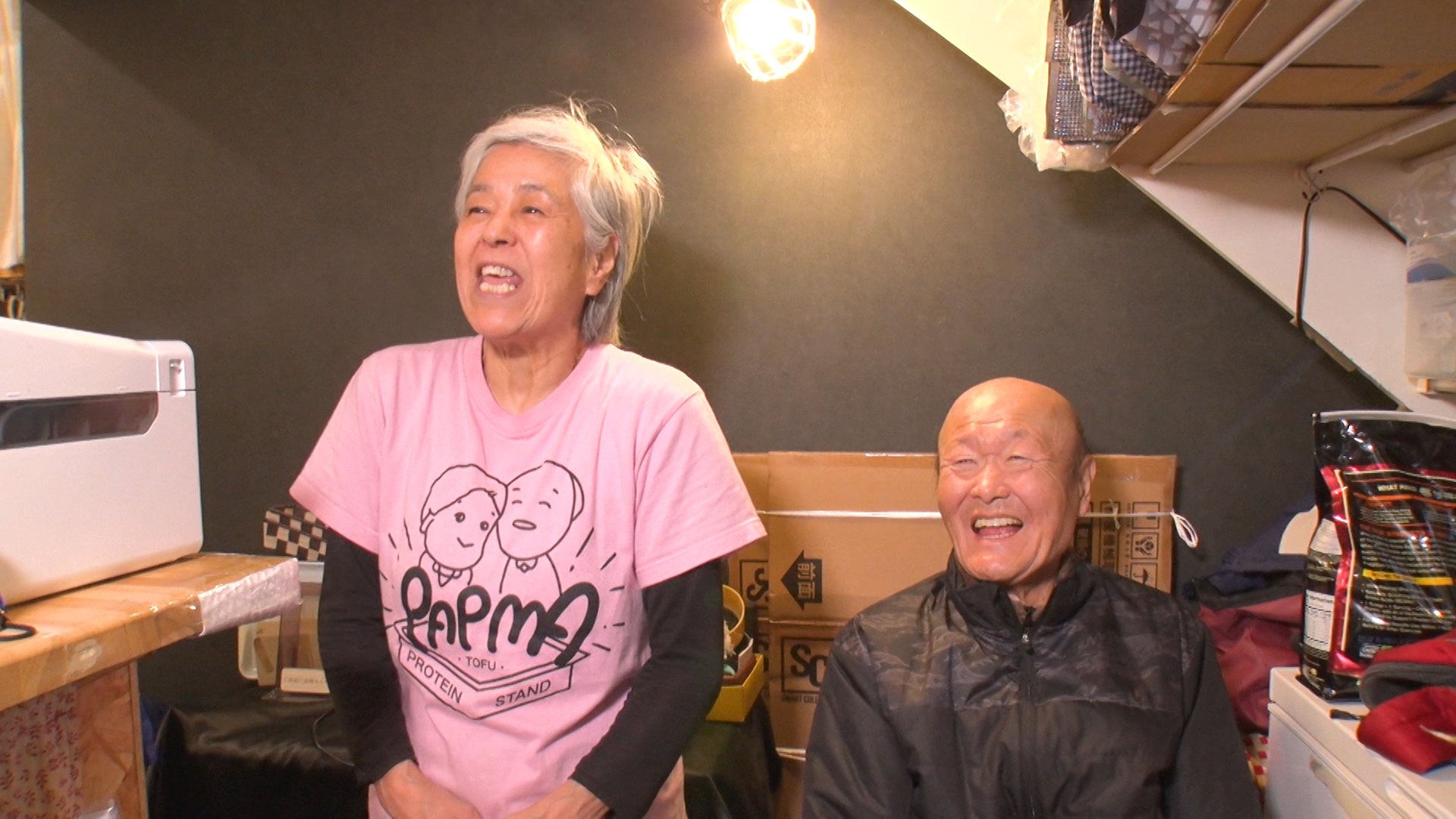 大阪市南堀江にある『豆腐スムージー PAPMA(パプマ)』。店に入ると、オールドルーキーのご夫婦「松ちゃんと町子ちゃん」が笑顔で迎えてくれます。黒ゴマスムージー『黒ごまっする』や『まっちゃ抹茶』『ココアどこ』など、遊び心あるネーミングが人気です。