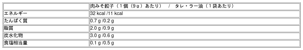 栄養成分表