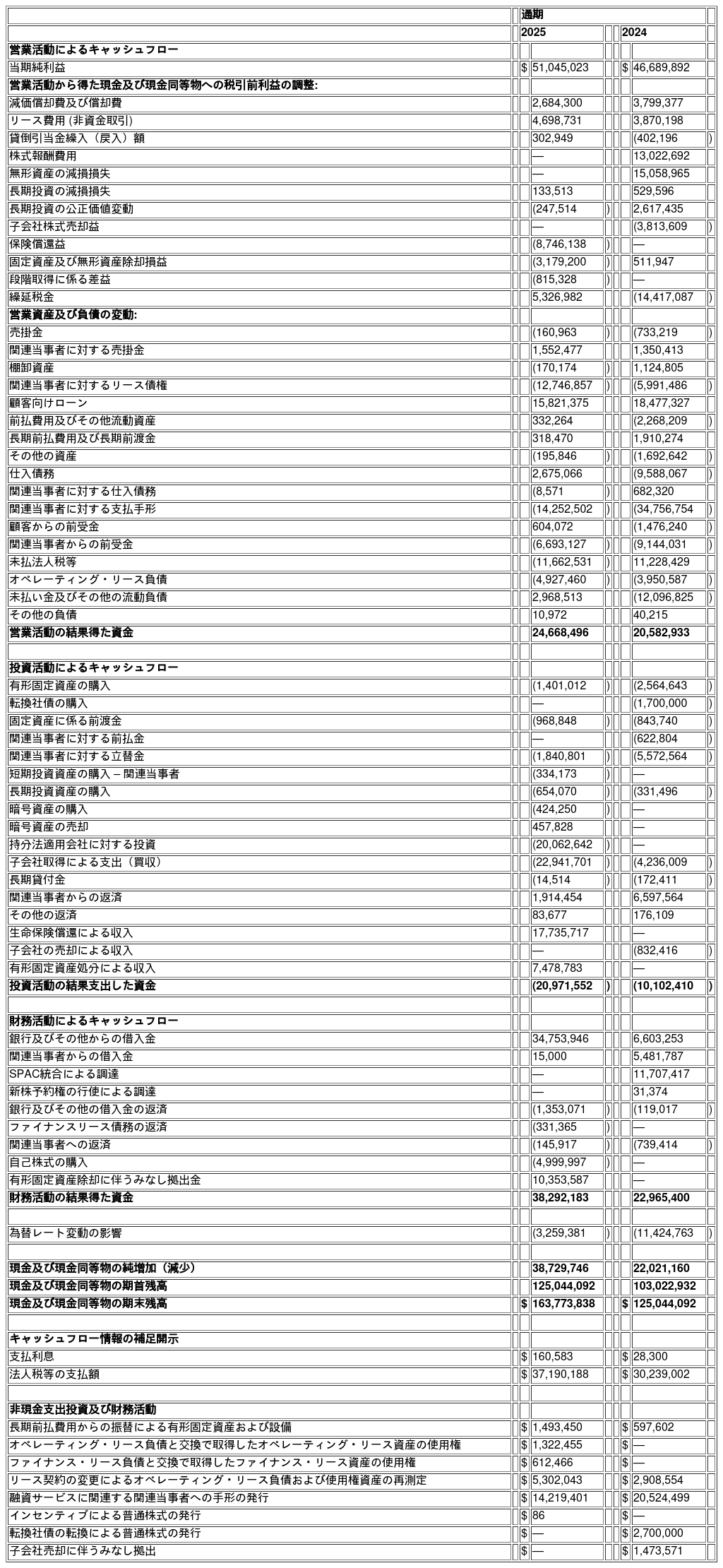 連結キャッシュフロー計算書